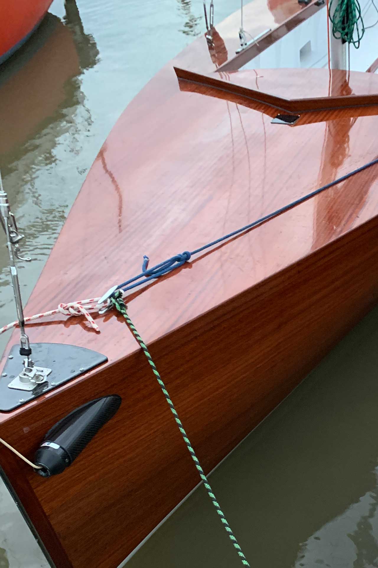 Einbau des CUL Masten Carbonrohrs in eine V-Jolle mit modernen Gennakerbaum.