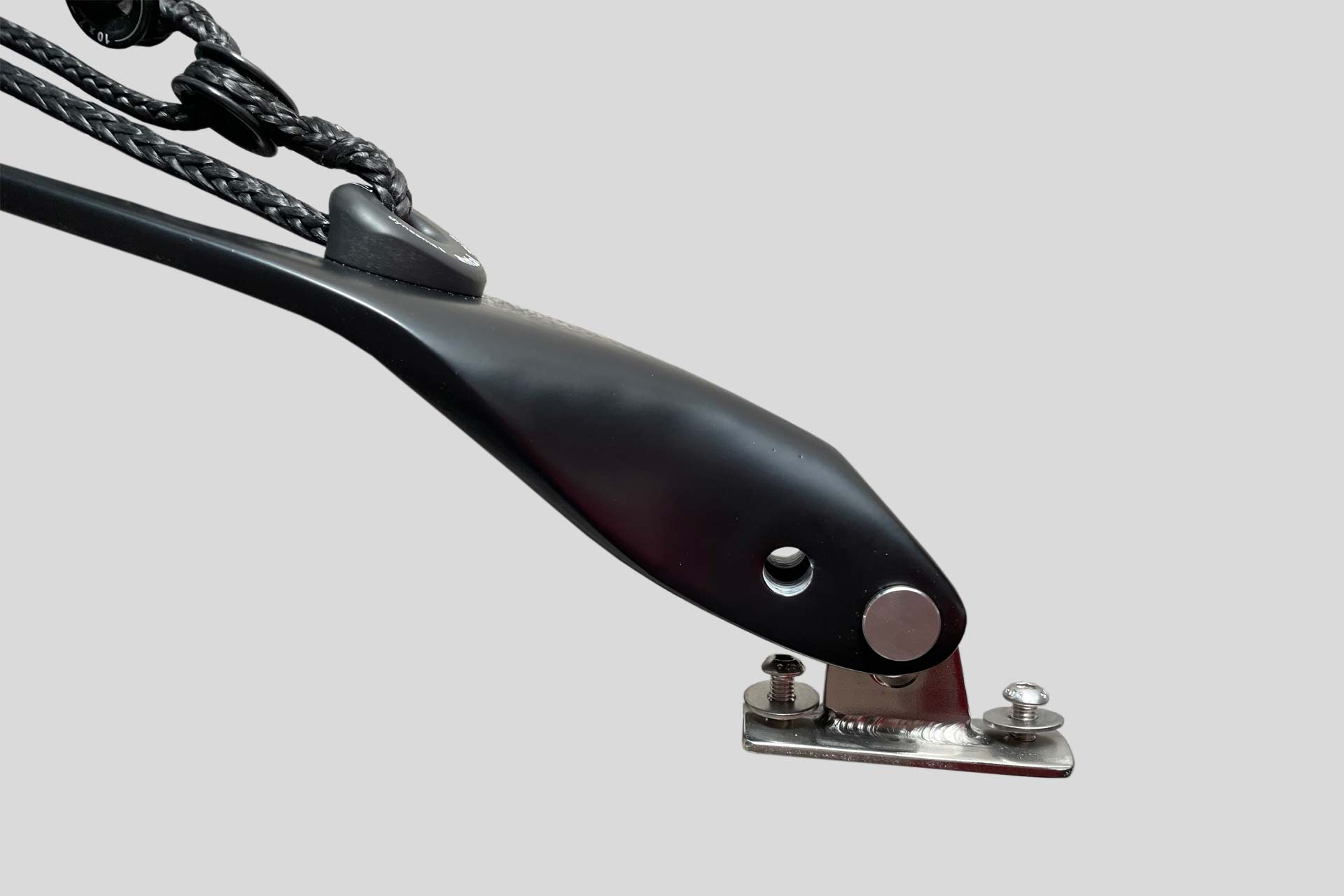 So funktioniert der CUL-Power-Kicker: Bei wenig Wind drückt der Power-Kicker den Großbaum nach oben und entlastet das Achterliek. Dies sorgt für den notwendigen Twist im Großsegel und optimalen Vortrieb. Die Länge und somit die Stärke der Drückerfunktion ist an den elegant geschwungenen Enden verstellbar. Ein wunderbarer Komforteffekt wird beim Ablassen des Großsegels sichtbar, da in diesem Fall der Großbaum stehen bleibt und nicht sofort die Dirkleine oder Baumstütze notwendig wird.