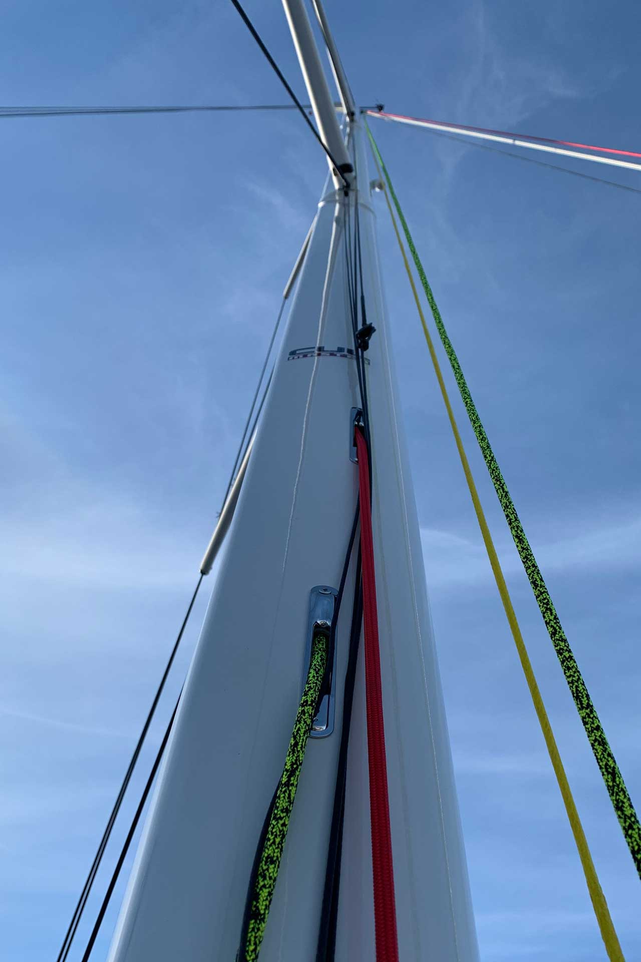 J92s Umrüstung auf CUL-Masten Carbon Rigg in weiß mit Synthetischen Rigging
