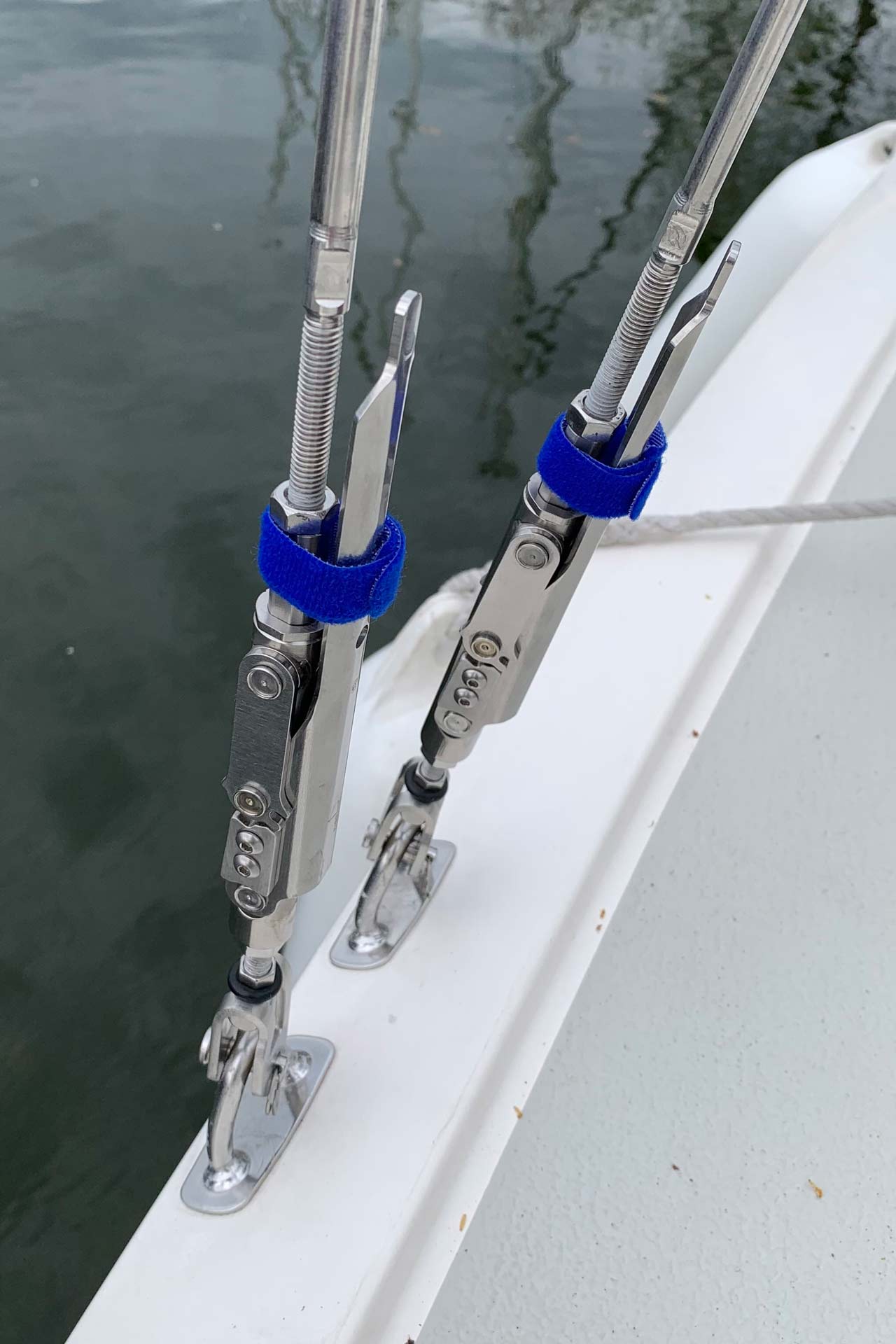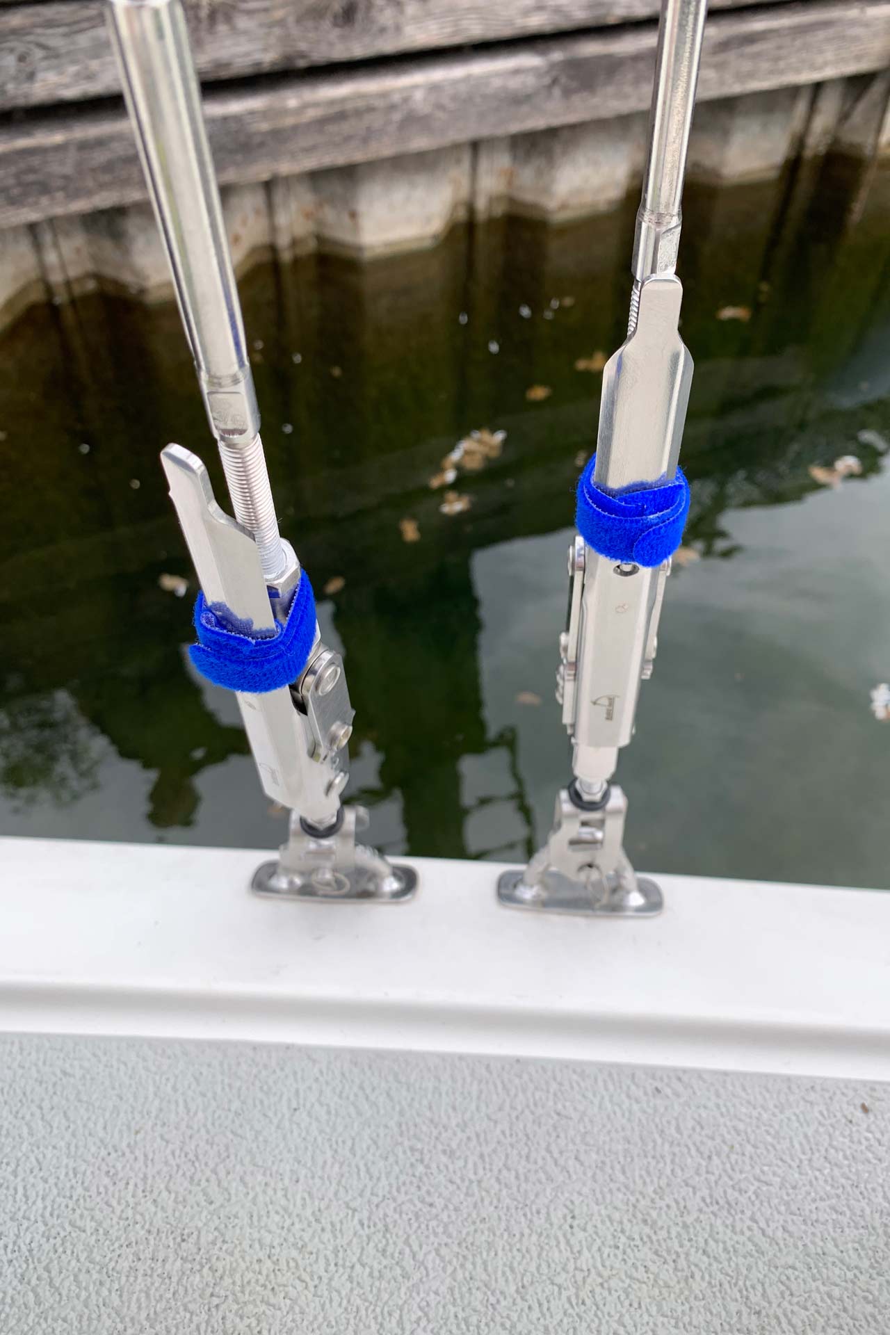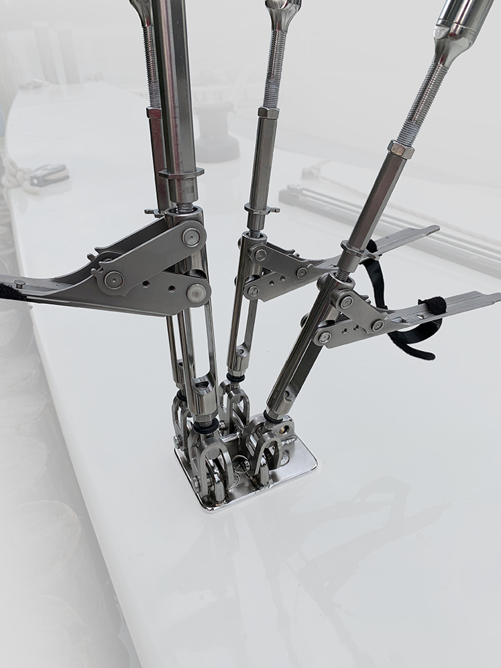 Mit den Rigglock Wantenspannern wird das stellen und legen des Riggs zum Kinderspiel. Einfach die Klett-Sicherung öffnen und mit dem Hebel die Wanten entlasten. Nun kann der Bolzen einfach gelöst werden. Im Frühjahr zum Mast stellen hat der Spanner dann absolut wieder die gleiche Einstellung.