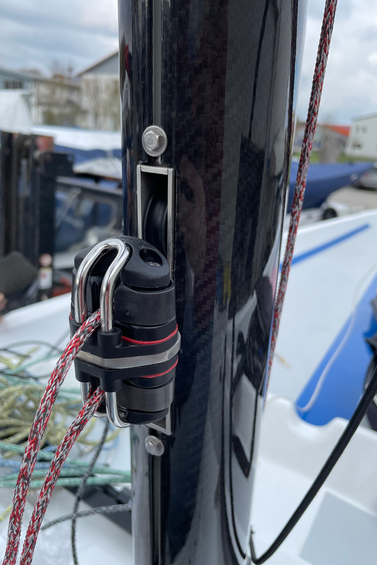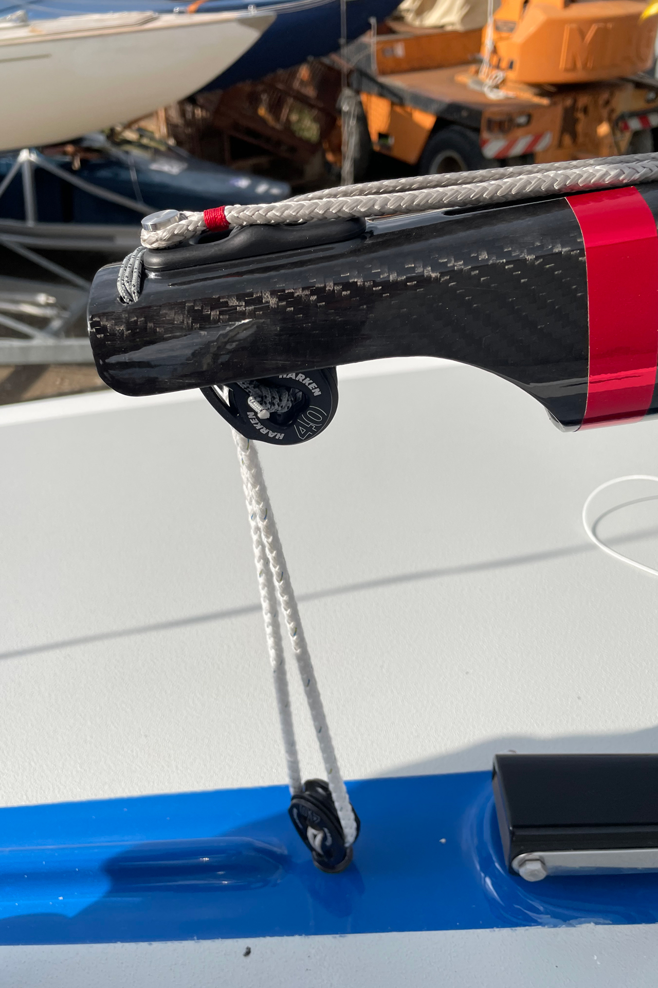 | Optionen | Carbon Rollenkästen Carbon Topbeschlag Großbaum mit Power-Kicker Halterungen für Spibaum am Großbaum Klemme für Spifall am Mast |