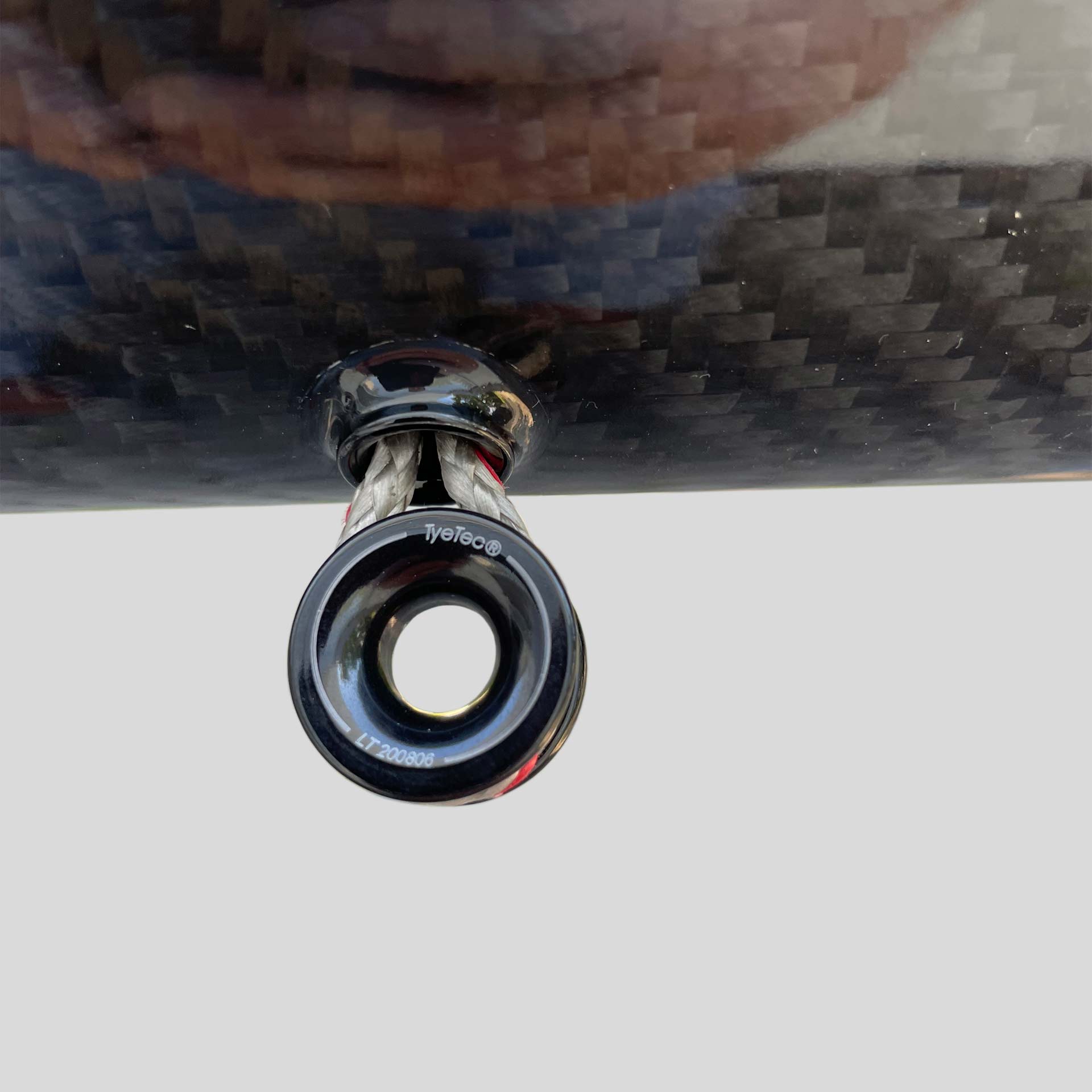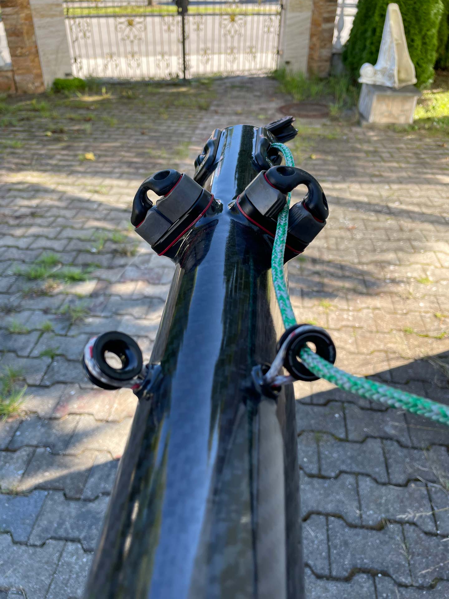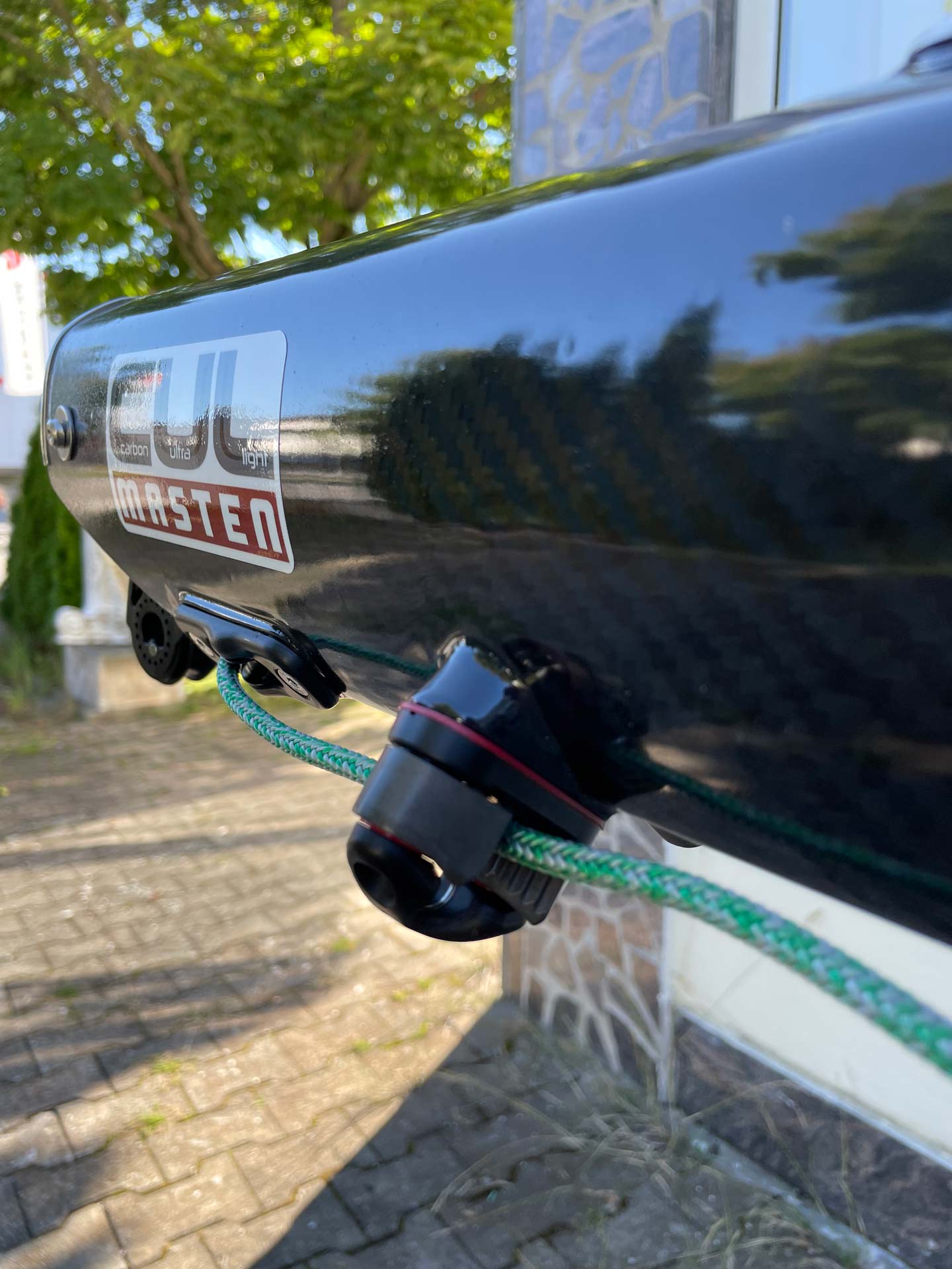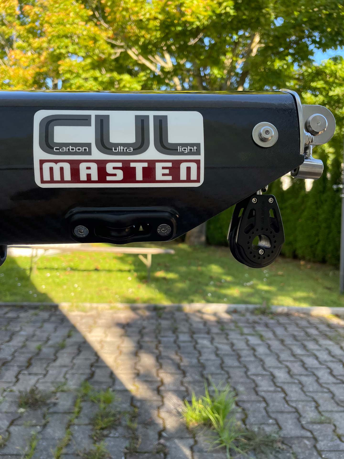 Für die neue Foiling Innovation aus Österreich haben wir einen leichten Carbon Großbaum gefertigt. Am Baum sind vorne zwei Klemmen für Unterliek und Verstellung des Drehmastes integriert. Diese können vom vorderen Cockpit Platz perfekt bedient werden. Alle Beschläge, wie bei uns üblich, leichtgängig und optisch dezent integriert.